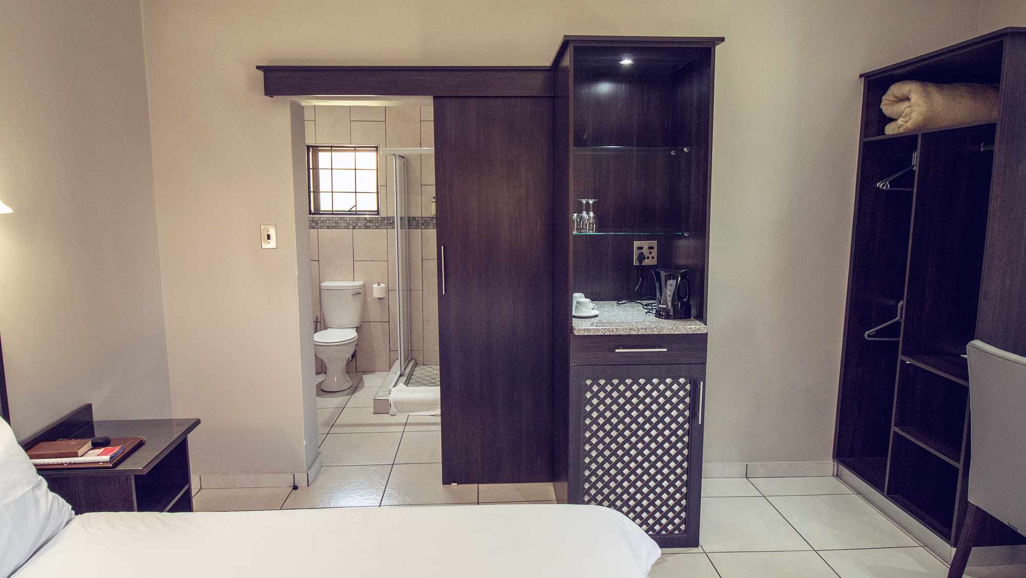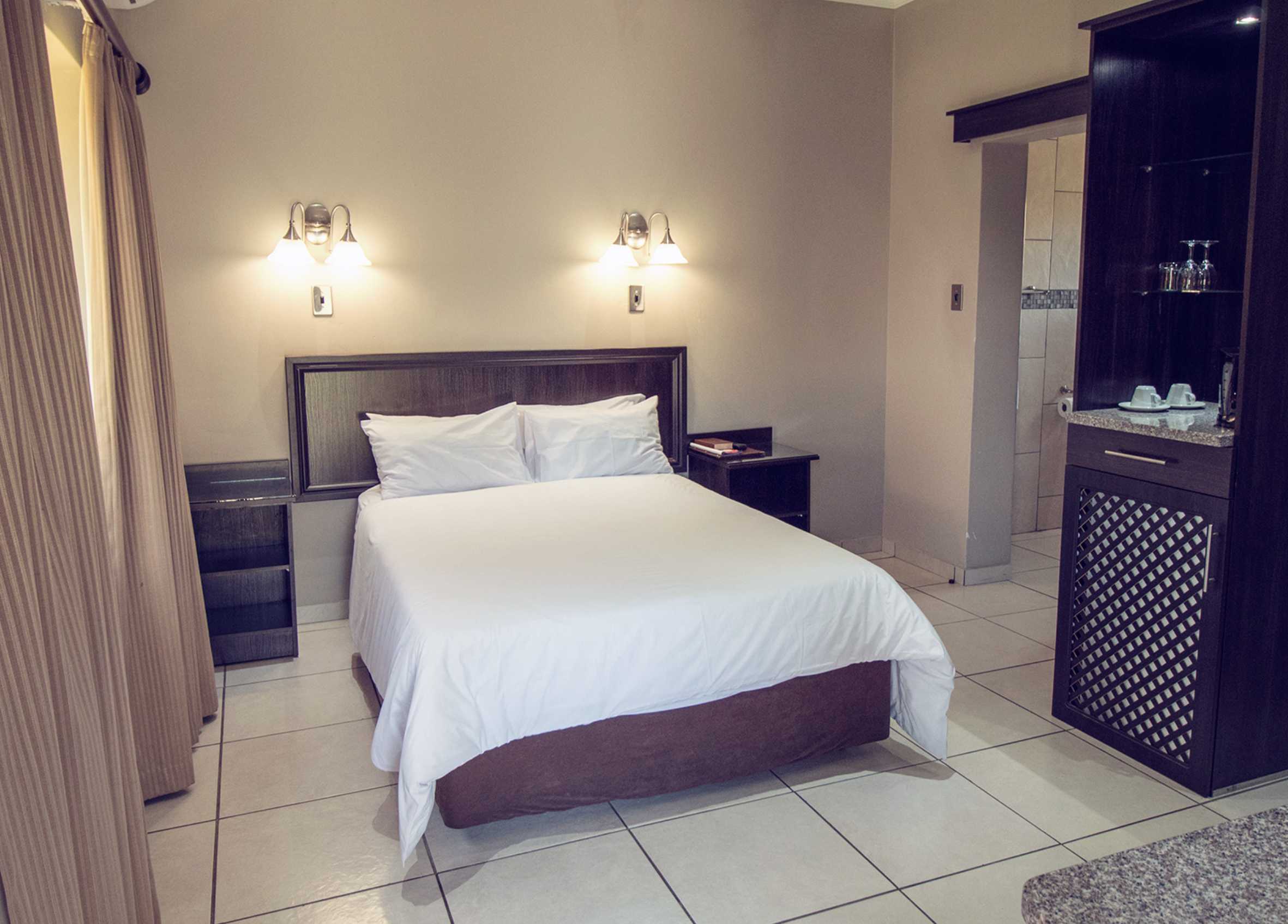 The lodge consists of 48 beautiful decorated standard rooms. Our rooms have modern and simplistic décor furnishings and are air-conditioned with free Wi-Fi throughout the property. All rooms consist of a flat-screen TV with 13 available DStv channels. Guests also enjoy the coffee and tea station facility, as well as the bar fridge which they are welcome to stock with refreshments of their preferences.